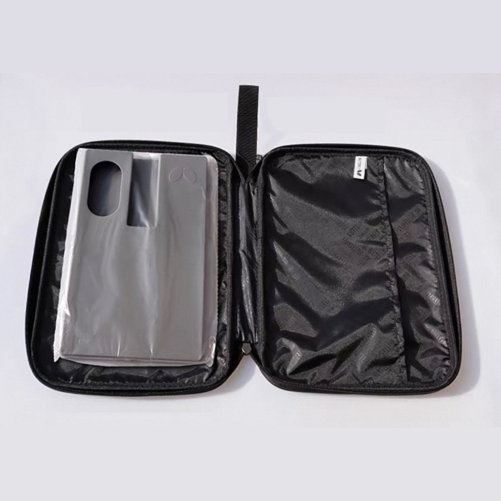 Чехол имеет жесткий пластиковый вкладыш для защиты ракетки от механических повреждений при транспортировке. Вкладыш также можно применять при наклейке накладок.